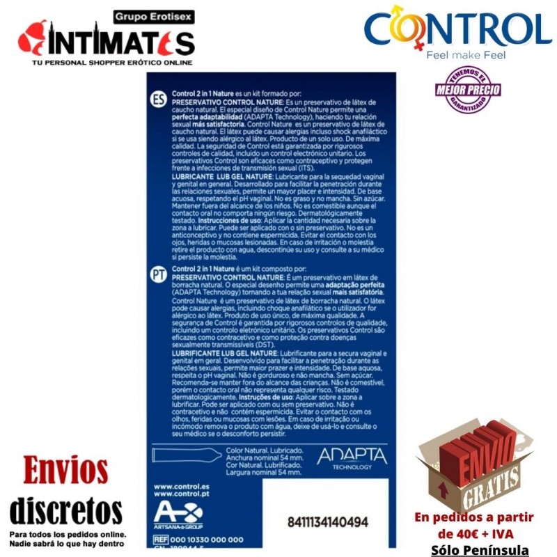 Cada kit contiene un preservativo Control Nature y una dosis de lubricante Control Nature.
