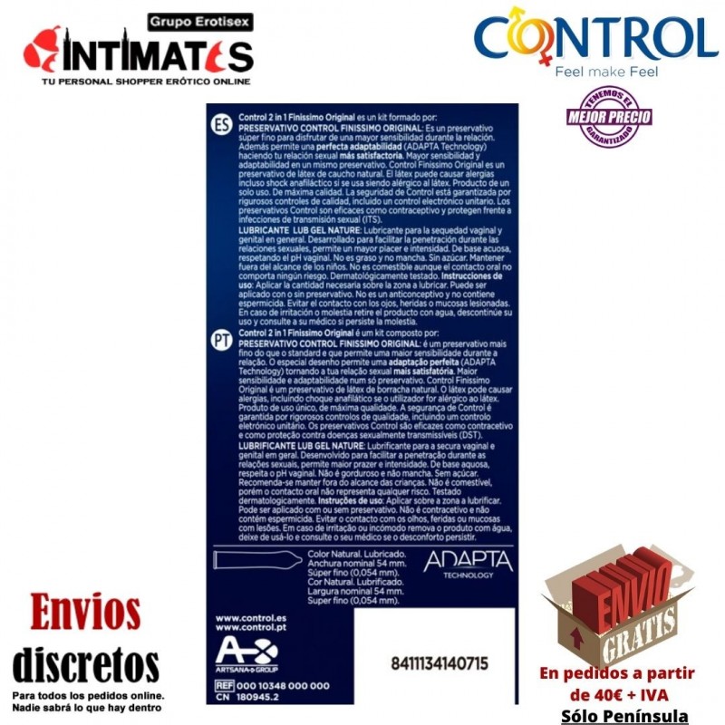 2in1 Finissimo · 6 Preservativos + Gel · Control