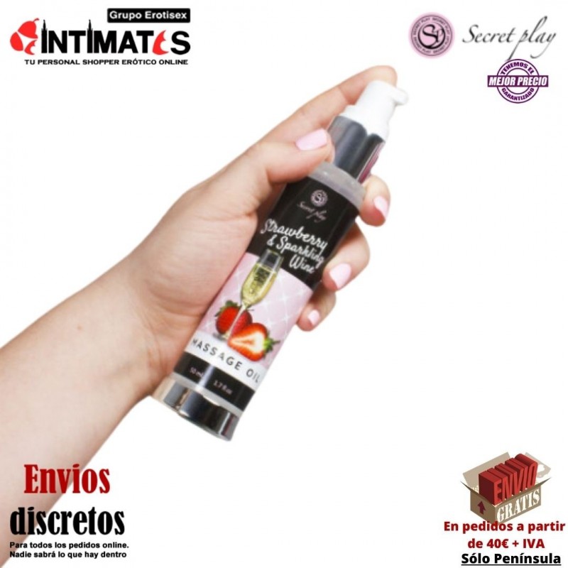 El aceite de masaje de Fresa & Cava tiene una textura sutil y deslizante la cual permite la estimulación de todos los sentidos a través del masaje.