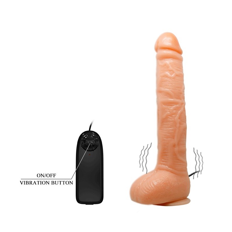 Si buscas un realístico dildo que te impresione, éste es para ti. El vibrador está formado por una cabeza bulbosa, ancho y venoso eje y los testículos realisticos. Está hecho de un material imitando la piel para la sensación real. Gracias a una ventosa en la base, este juguete se puede fijar en cualquier superficie lisa para usarlo sin la ayuda de las manos. La función de vibración te dará la sensación de lujosos temblores para una mayor estimulación.