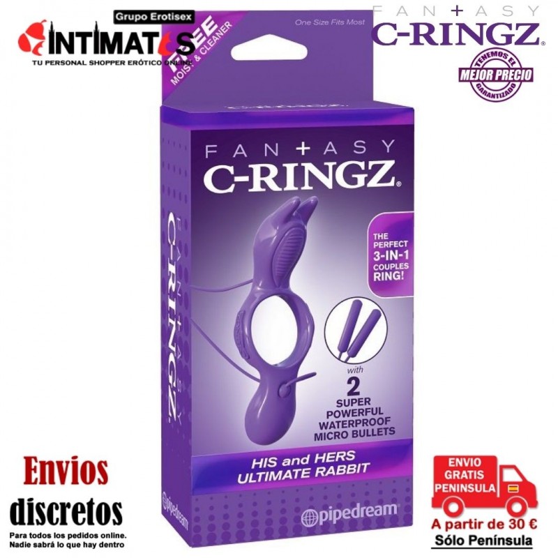Fantasy His and Her Ultimate Rabit está orientado a la pareja , estimulará al hombre y a la mujer simultáneamente, limitando el flujo de sangre y mejorando gracias a ello el tamaño de su pene además controlará la eyaculación, potenciando la resistencia, por si todo fuera poco incorpora dos potentes balas vibradoras controladas vía remota (con cable) y un mando multi-velocidad, gracias a su diseño totalmente innovador estimulará perineo y clítoris simultáneamente.