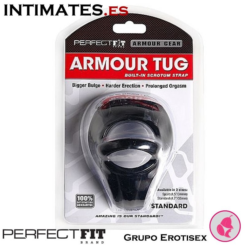 De diseño revolucionario el anillo Armour Tug, combina los beneficios de la protuberancia, la erección y el orgasmo del mejor anillo Cock Armour, con un extra para tus pelotas.