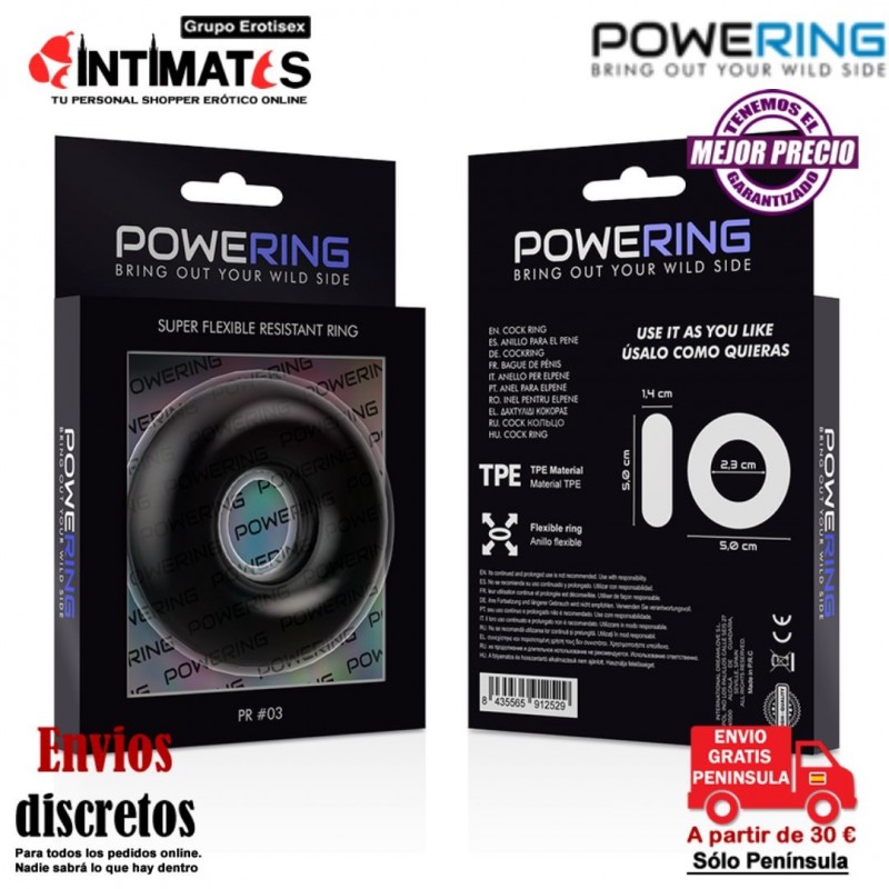 Prolonga la diversión y haz que el placer dure con este anillo para el pene de TPE hipoalergénico de Powering.