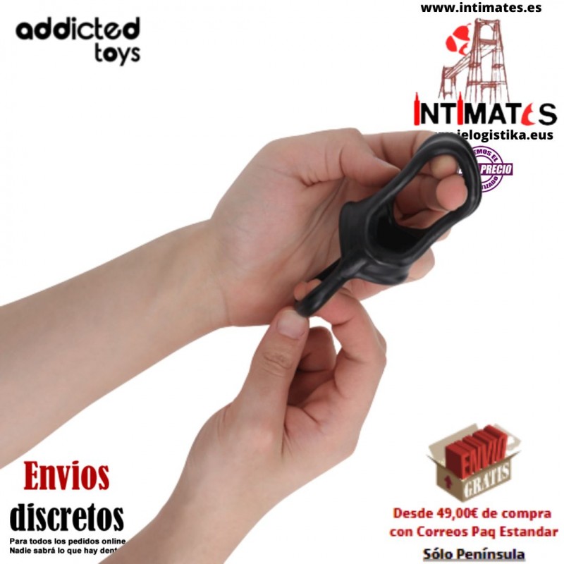 El anillo jaula para el pene Addicted Toys es un accesorio diseñado para proporcionar una sensación de sujeción y control, ideal para quienes buscan prolongar la erección y aumentar la intensidad del placer.