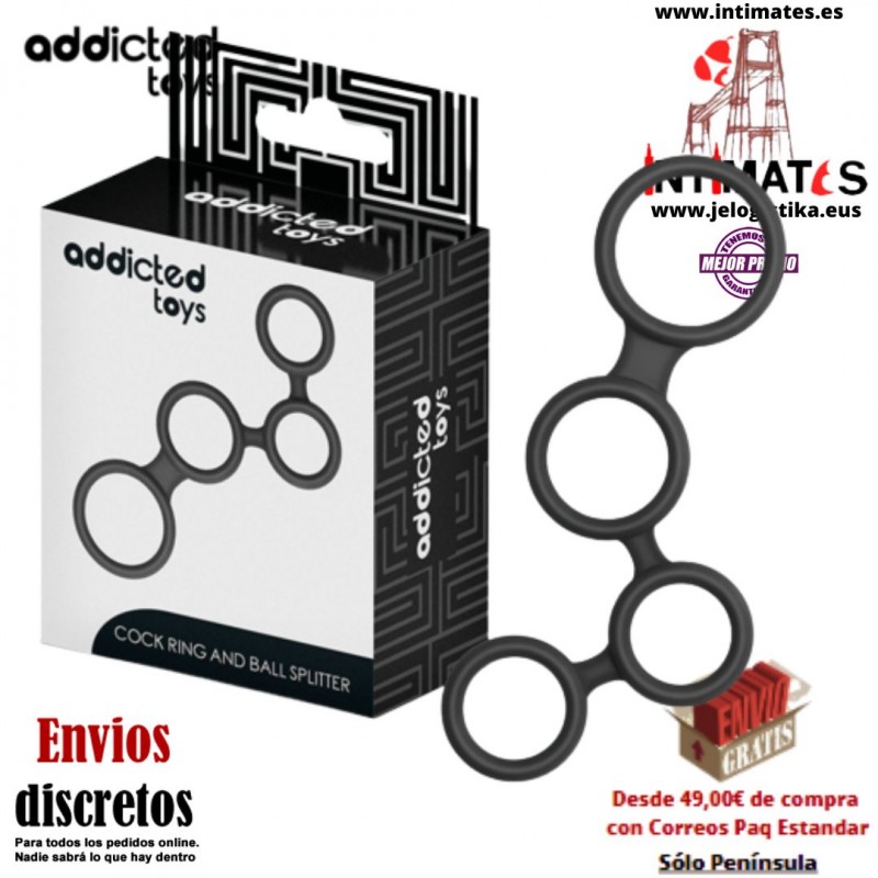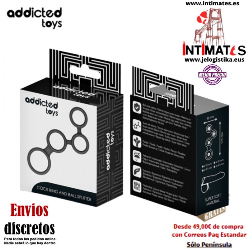 Cock Ring and Ball Splitter · Anillo para el pene con divisores para testículos· Addicted toys