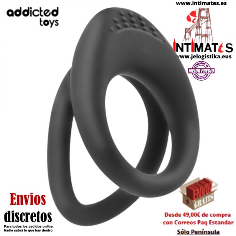 El anillo texturizado doble para el pene Addicted Toys está diseñado para mejorar la estimulación y proporcionar un ajuste firme, ayudando a prolongar la erección y aumentar la intensidad del placer.