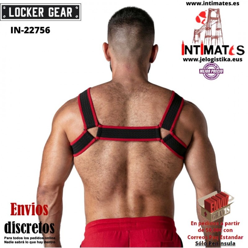 Look at harness · Arnés de malla elástica reforzada · Locker Gear rojo