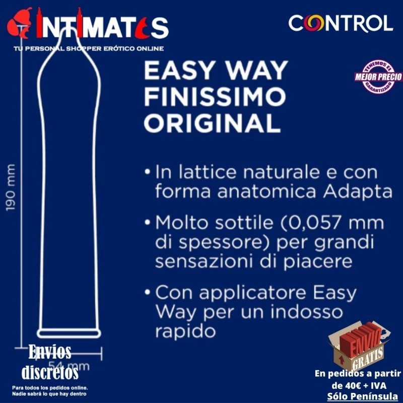Es un preservativo muy fino, con un grosor menor a los modelos estándar de la gama Control aún más cómodo de poner gracias a la delicada lengüeta que indica el sentido correcto y permite desenrrollarlo más fácilmente.