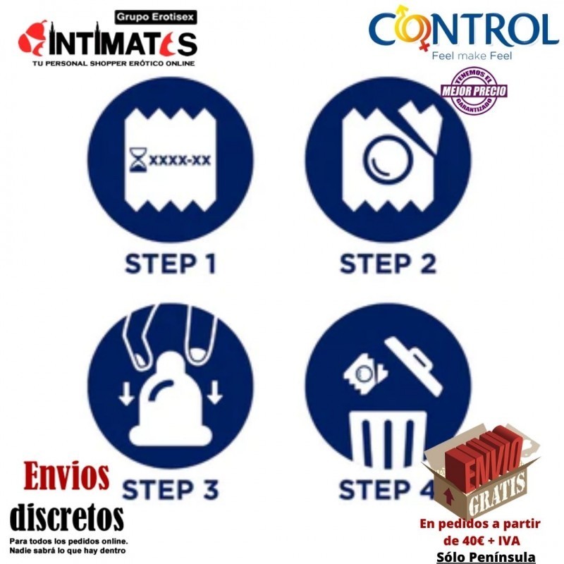 La seguridad de los preservativos Control está garantizada por un proceso de fabricación sometido a rigurosos controles de calidad, finalizando con el control electrónico unitario.