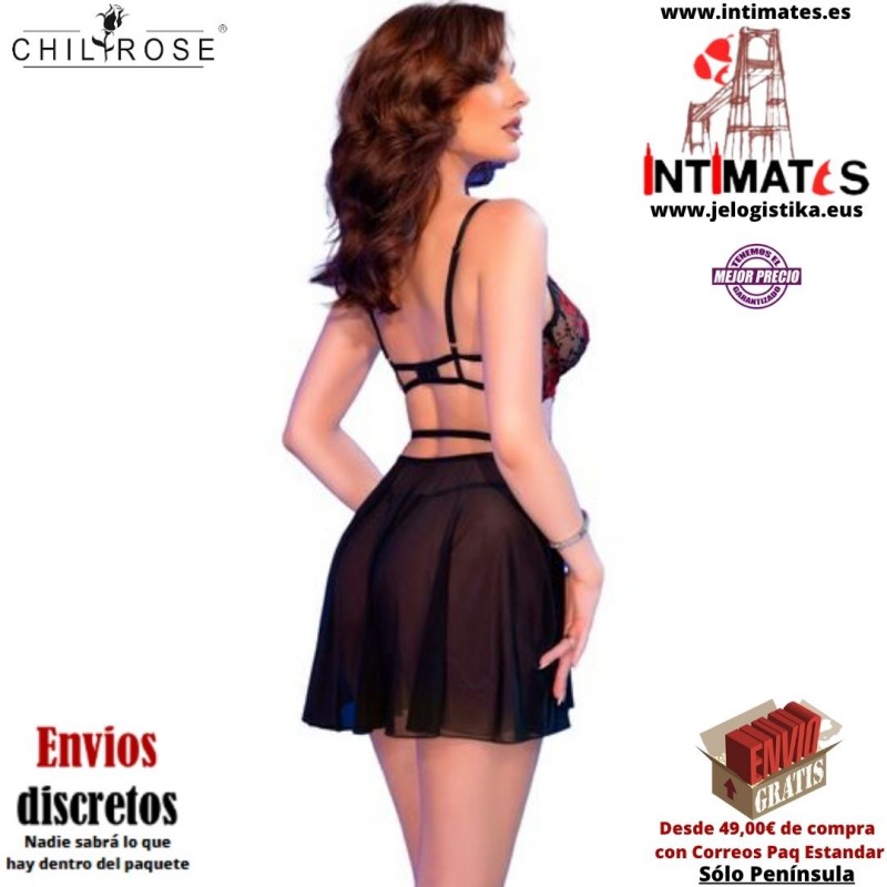CR-4869· Babydoll negro / rojo · Chilirose