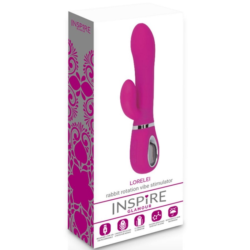 Presentamos a Lorelei, un potente elegante vibrador/ rotador de cuerpo resistente, recargable que transmite poderosas vibraciones a través de la irrestible silicona médica. La gama Glamour de Inspire es una colección completa de juguetes con máxima calidad.