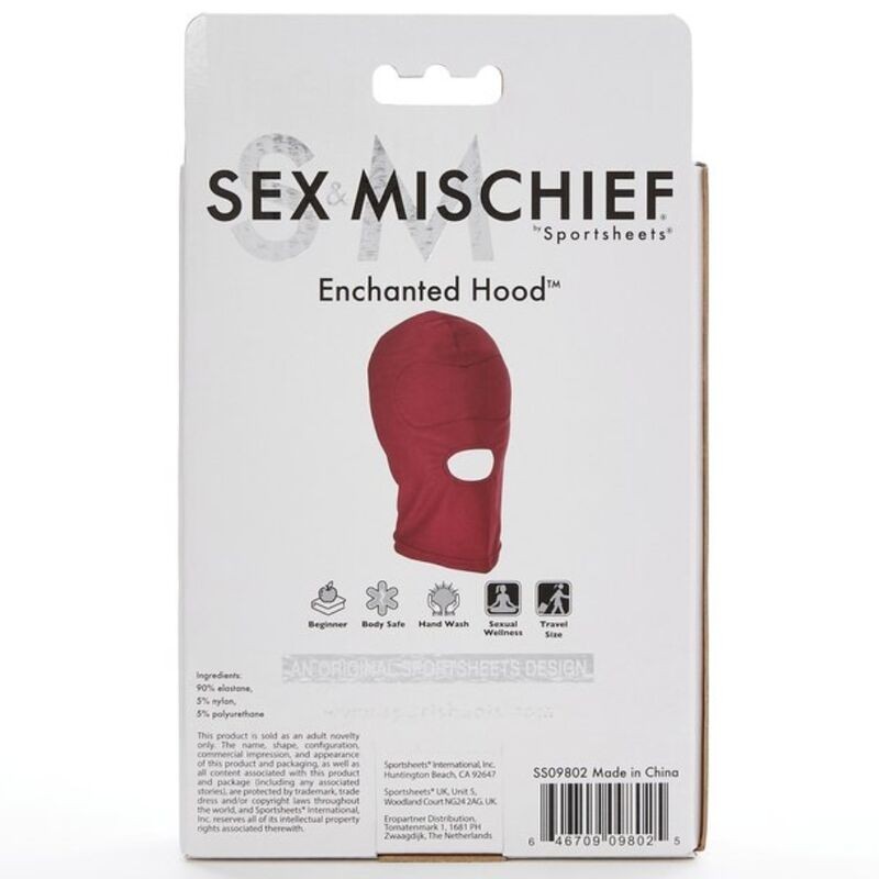 Haz que tu amante se estremezca con anticipación explorando el mundo de la privación y juegos de dominación usando la capucha Enchanted carmesí.