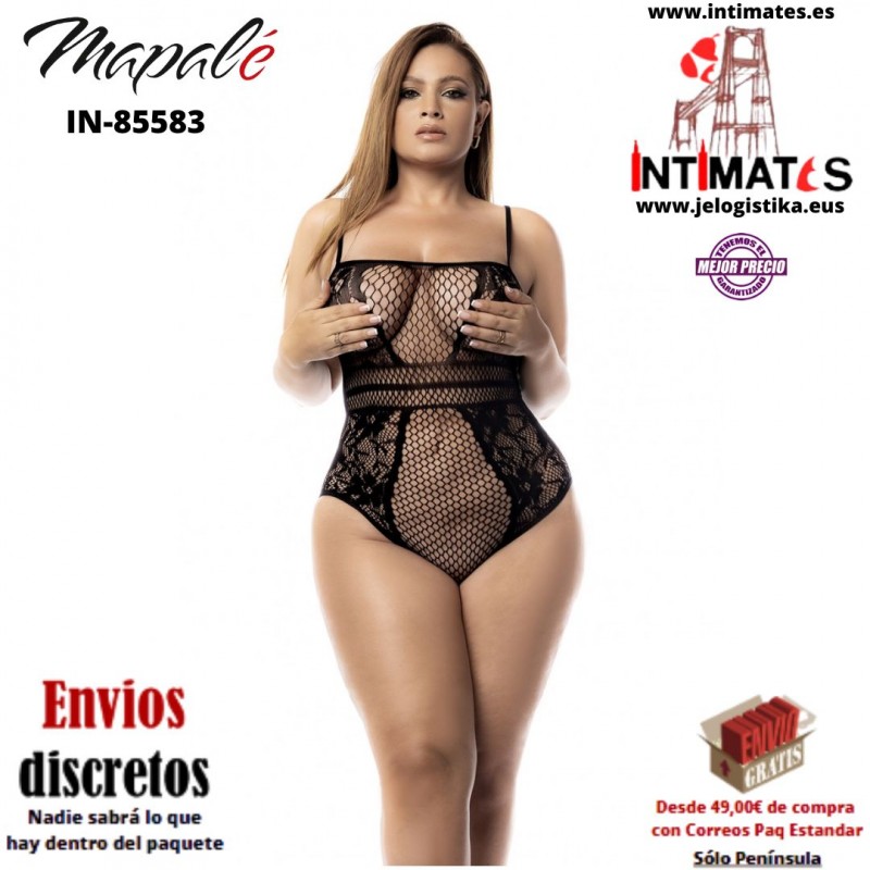 Acentúa tu figura con este bodystocking con rejilla y detalles florales de Mapalé.