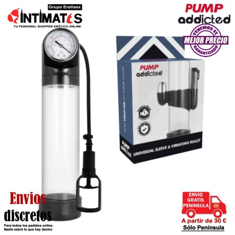 Por si fuera poco, también puede ser combinada con algunos modelos de la serie Pump, la manga masturbadora Pleasure sleeve, disponible en dos tamaños, lo que convierte a Pump Addicted en tu masturbador favorito.