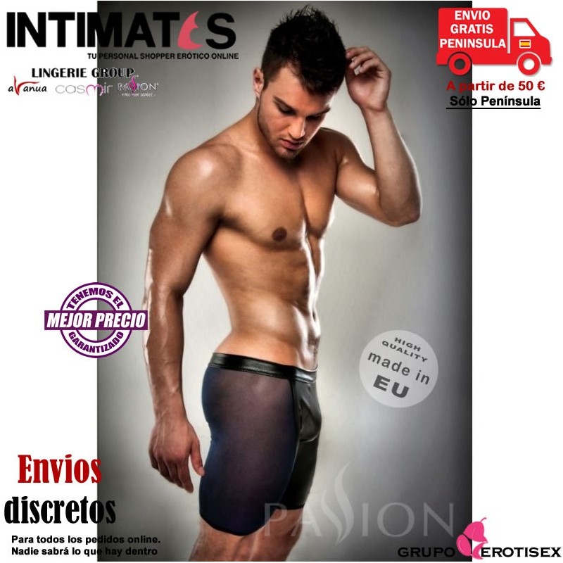 Atractivo bóxer largo hecho de tul azul marino, con la cinta de la cintura en color negro brillante.