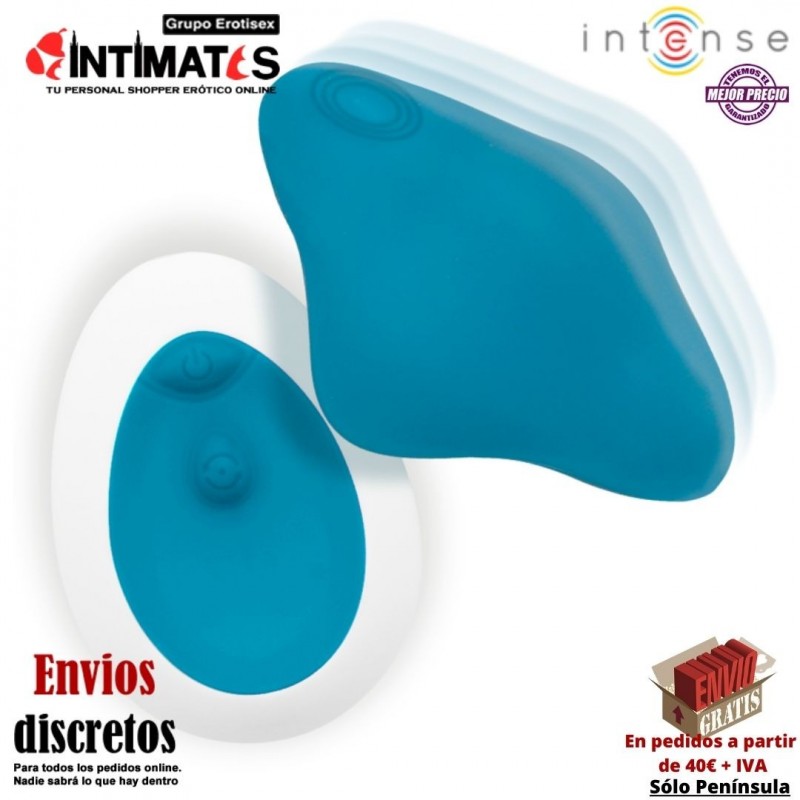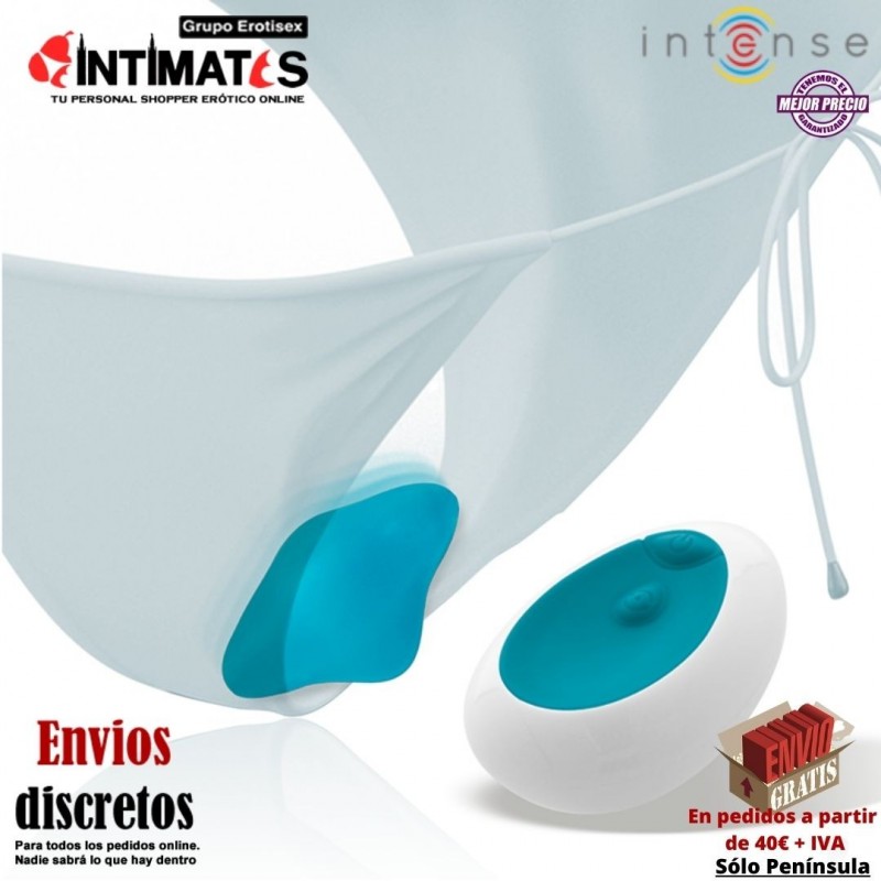 Este pequeño vibrador lleva un mando a distancia, y se coloca discretamente en las bragas o el tanga y su forma hará que no se mueva del sitio exacto.