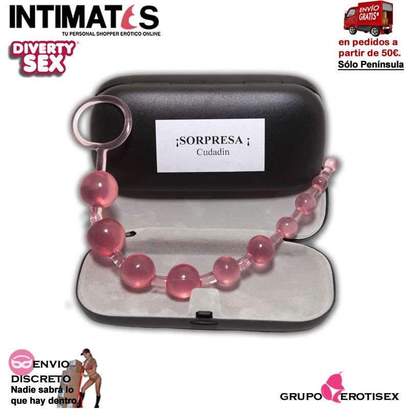 Cuidadin, es un estuche con sorpresa que contiene una cadena anal.