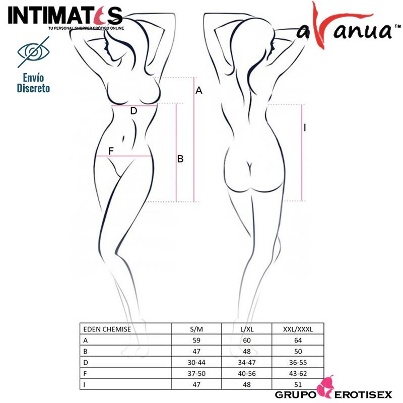 Eden es un camisón azul con encaje blanco que incluye el tanga a juego y con el que podrás disfrutar como nunca de una noche de pasión sintiéndote elegante y sexy a la vez.