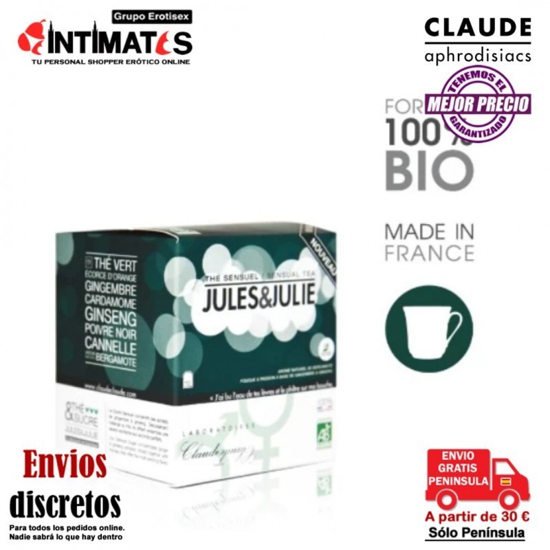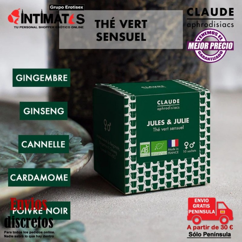 Como todos los productos Claude-Aphrodisiacs, Jules & Julie Sensual Green Tea cumple con las especificaciones de la fitoterapia orgánica, 100% natural y producido íntegramente en Francia.
