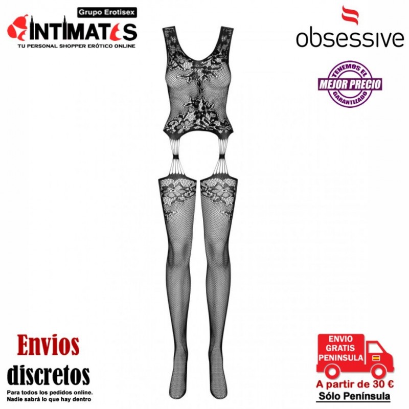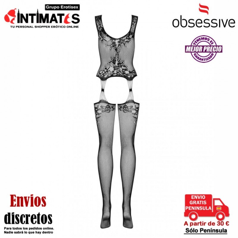 Imagina tu cuerpo envuelto en una sexy malla negra con un increíble motivo floral.
