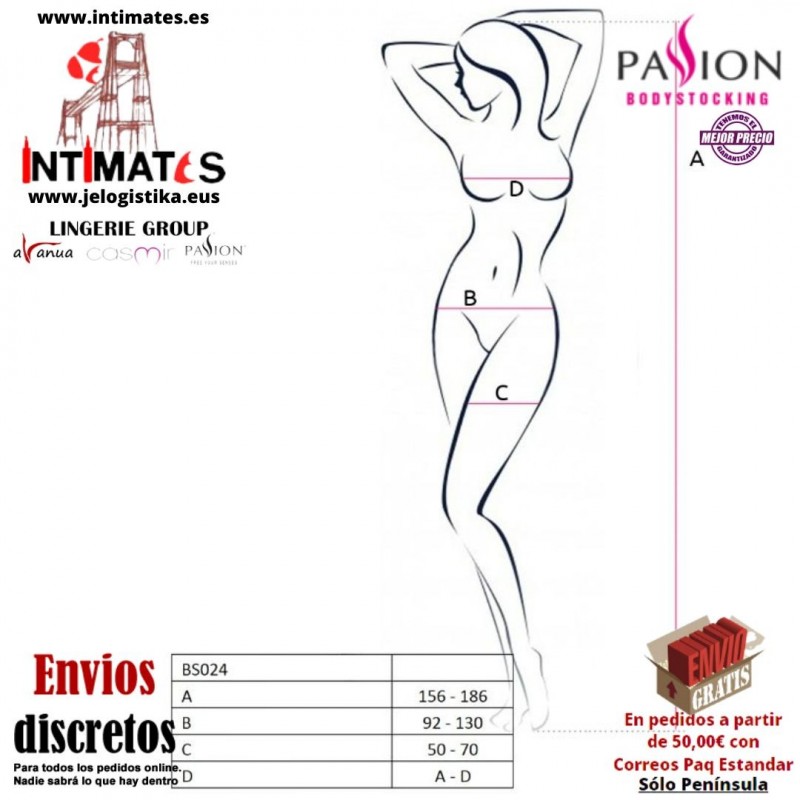 BS024 es un elegante body de cuerpo entero sin mangas y con abertura hecho de rejilla y acabado con delicados bordados.