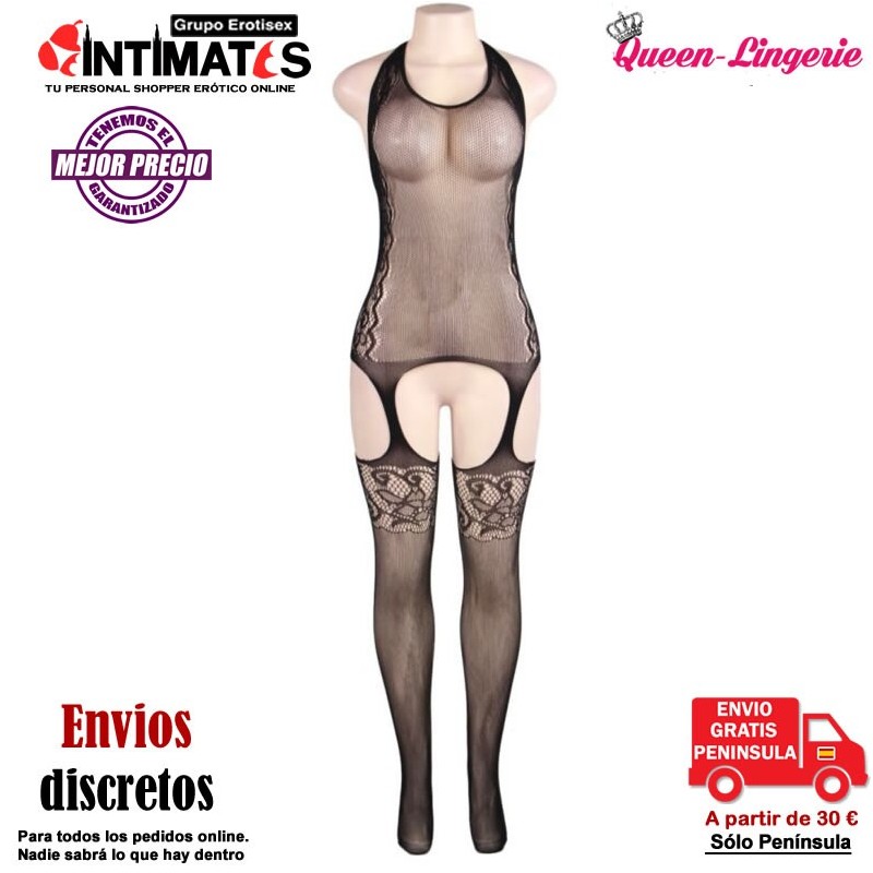 Sensual bodystocking con diseño floral y transparencias y encajes que no dan lugar a la imaginación.