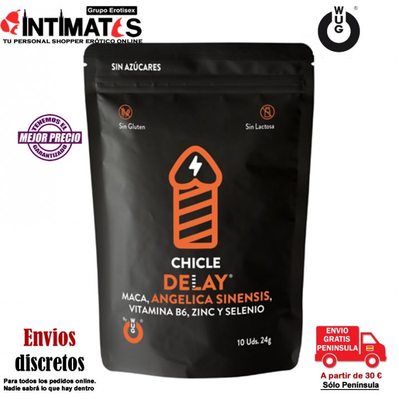 Wug Delay Gum, es un complemento alimenticio, en formato chicle, sin azúcar y con un agradable sabor.