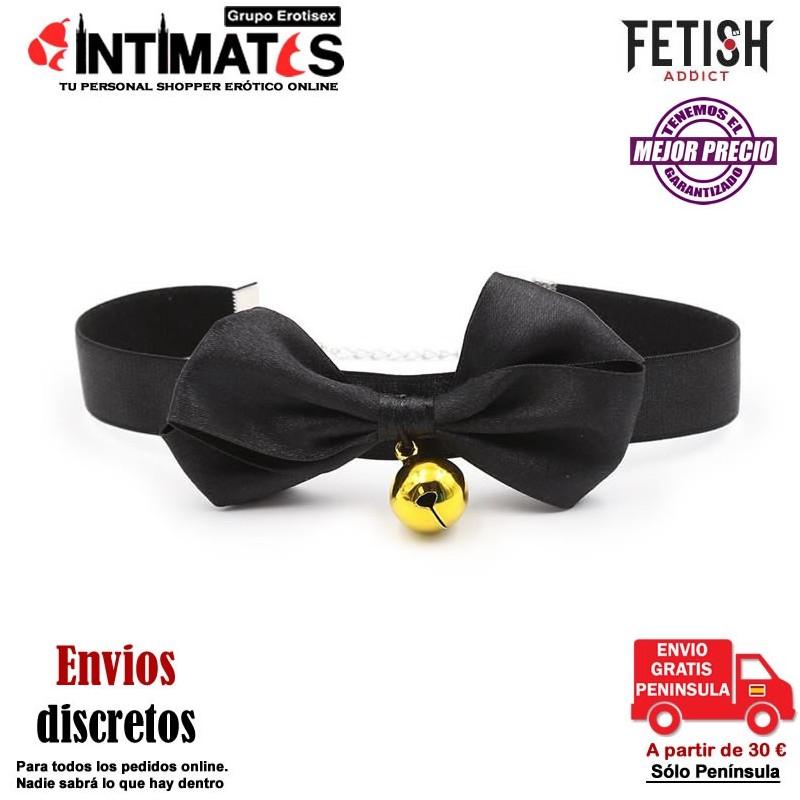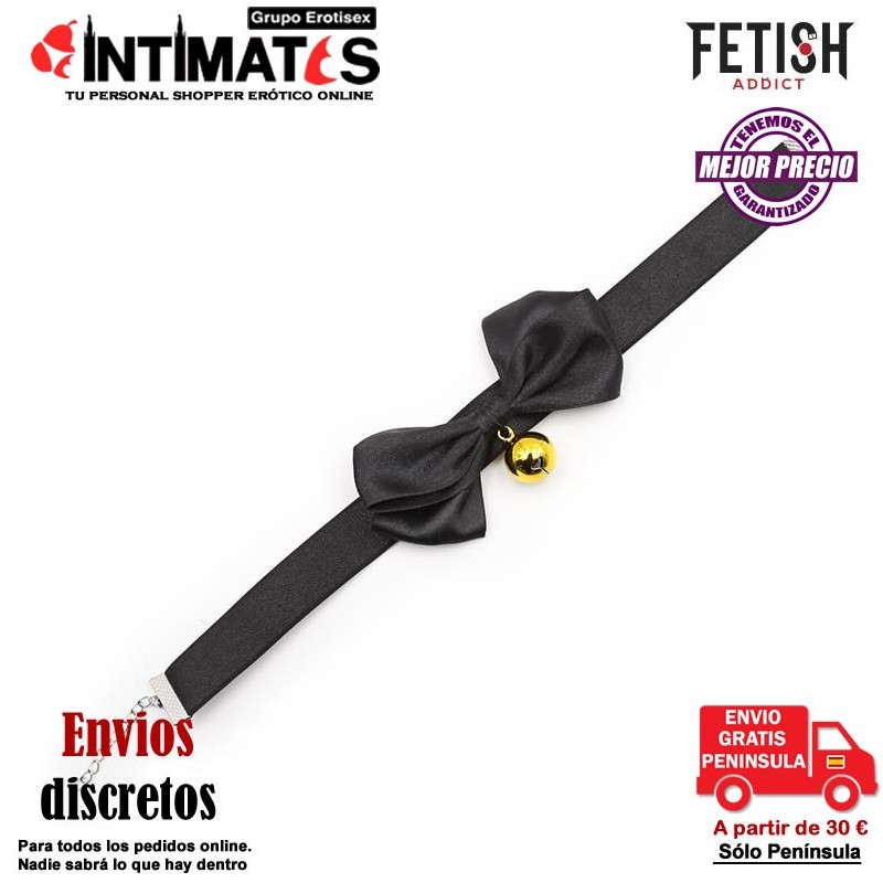 Cuenta con un sensual lazo negro y en el centro de este, un cascabel de color dorado, ideal para esos eróticos juegos de rol.