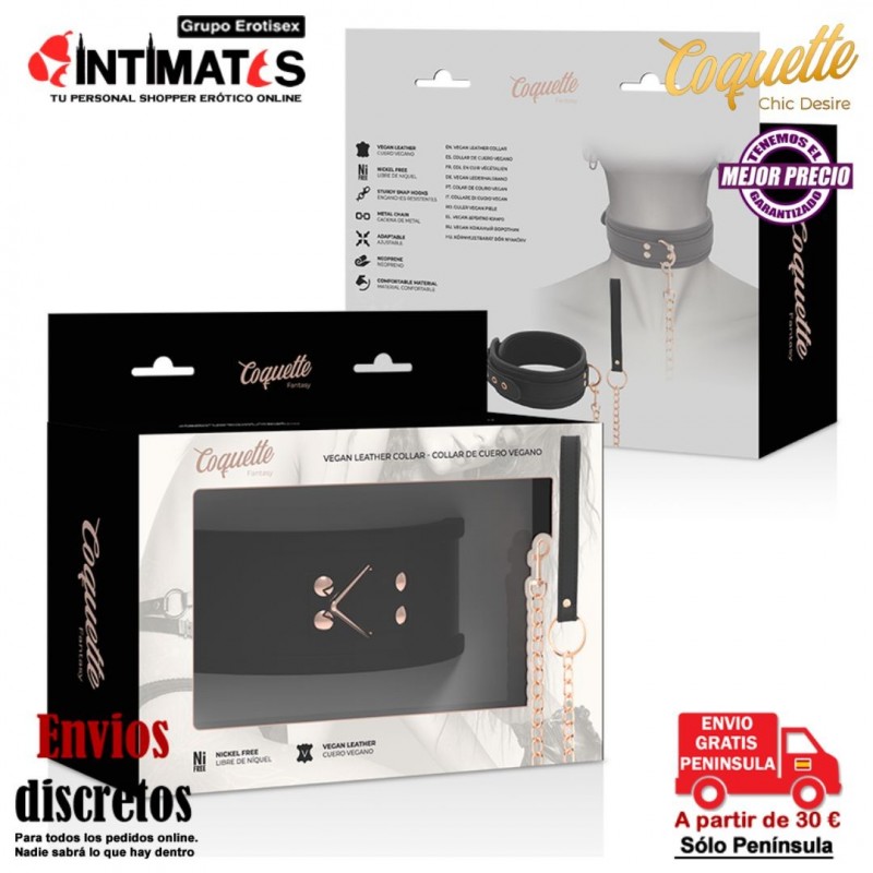 Collar de cuero vegano con cadena de metal 100% libre de níquel, resistente y seguro de Coquette Fantasy.