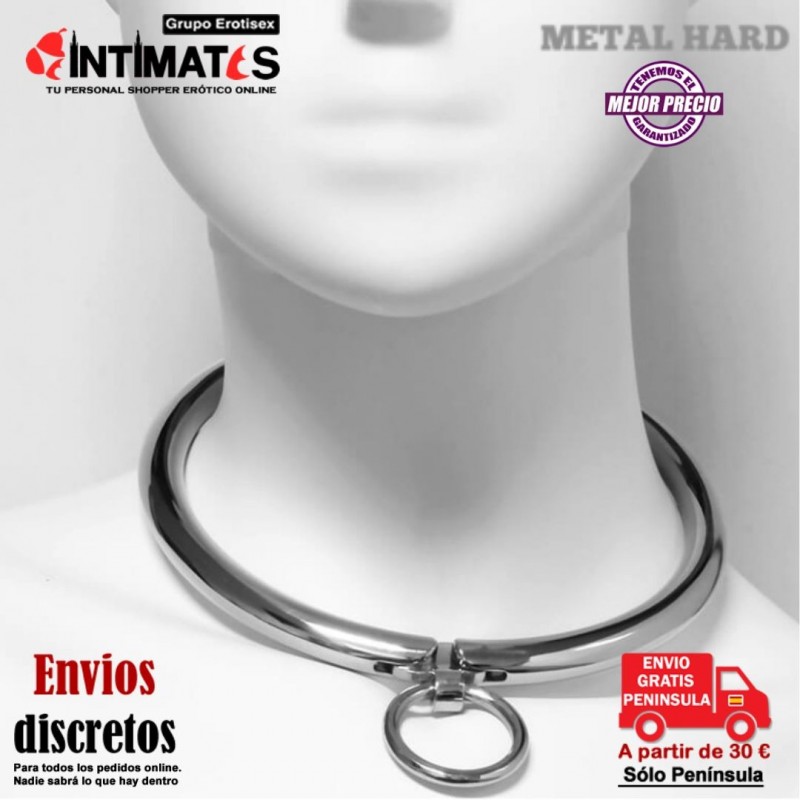 Lleva una anilla de metal para que se le puedan incorporar juguetes al collar como por ejemplo cuerdas, cadenas o esposas.