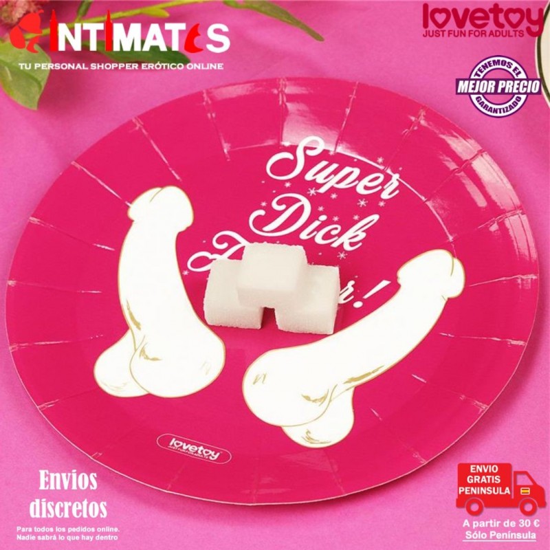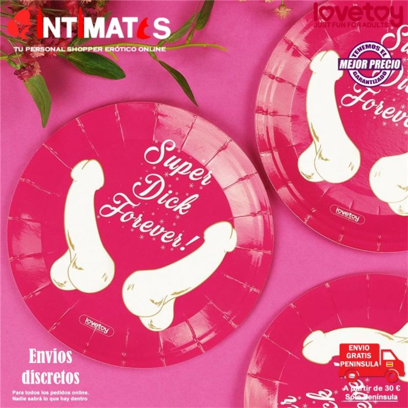 Cada plato de despedida de soltera tiene dos lindos penes y escrito Super Dick Forever.