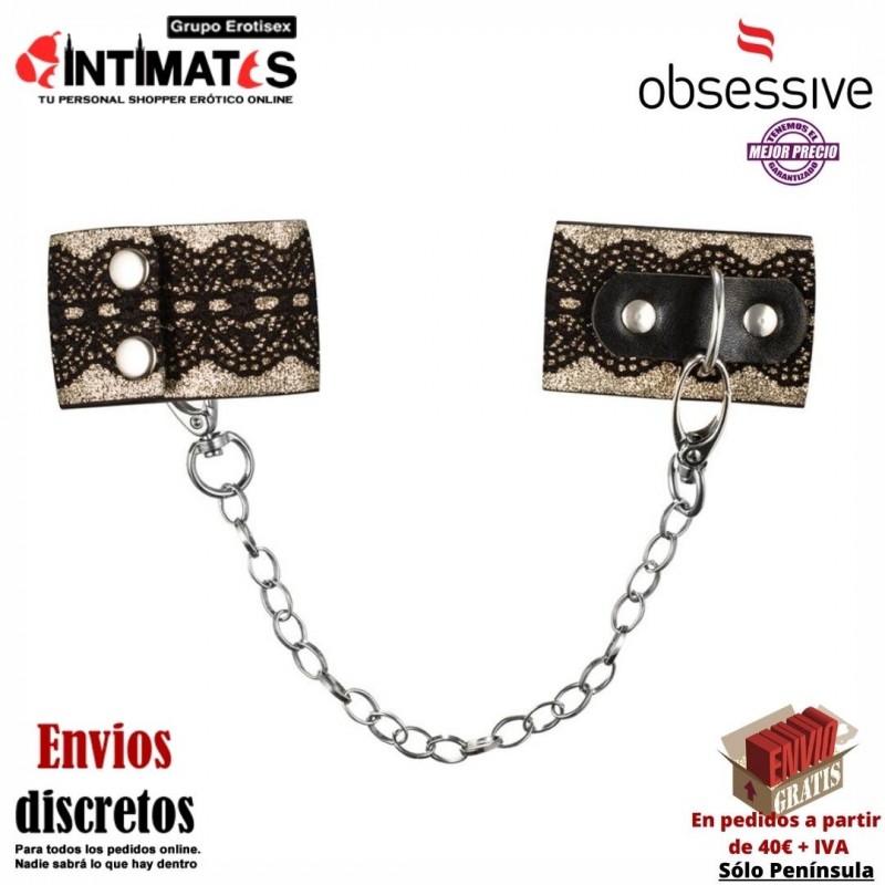 A746 · Esposas doradas decoradas con encajes negros · Obsessive