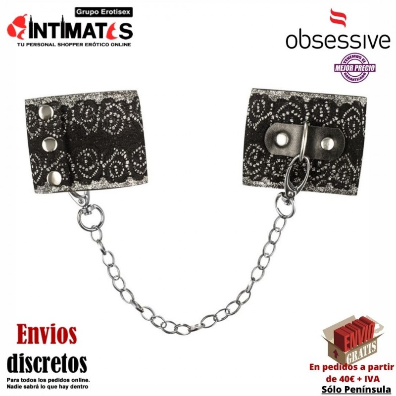 A747 · Esposas plateadas decoradas con encajes negros · Obsessive