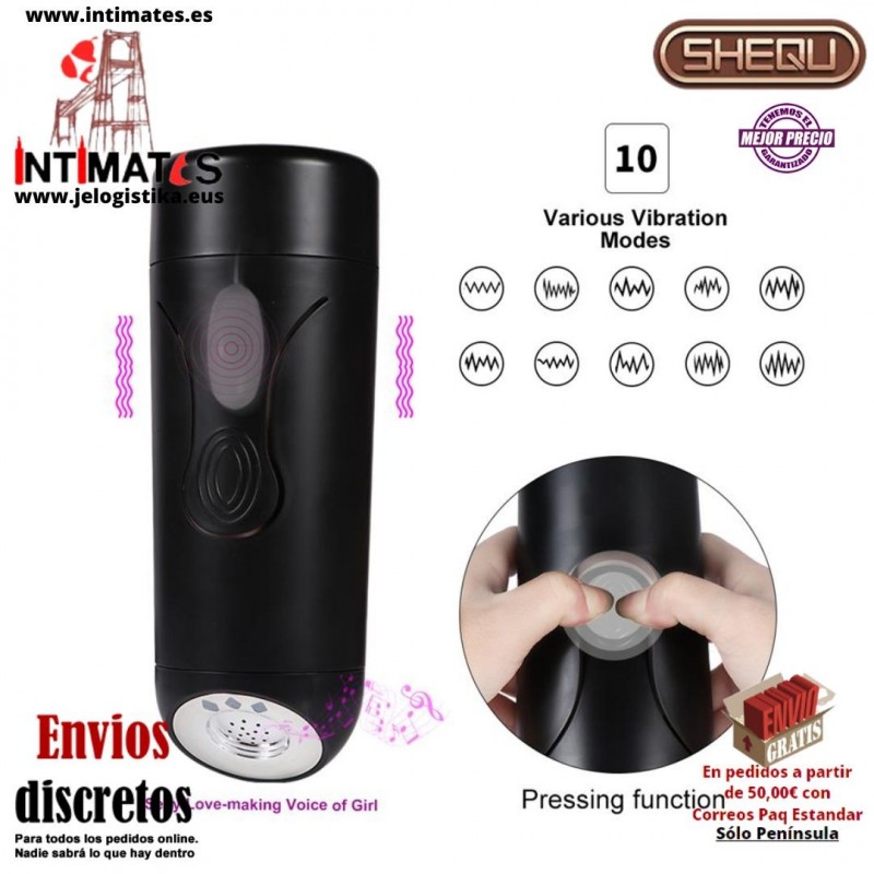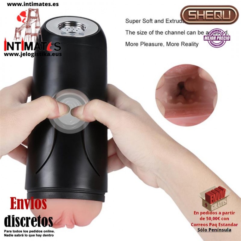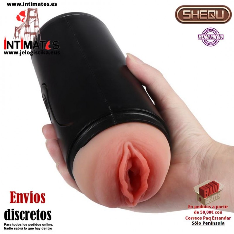 Fanny es un masturbador masculino con abertura de vagina de la marca Shequ diseñado para ofrecer una experiencia de placer intensa y realista, combinando una textura suave y detallada con potentes vibraciones que aumentan la estimulación.