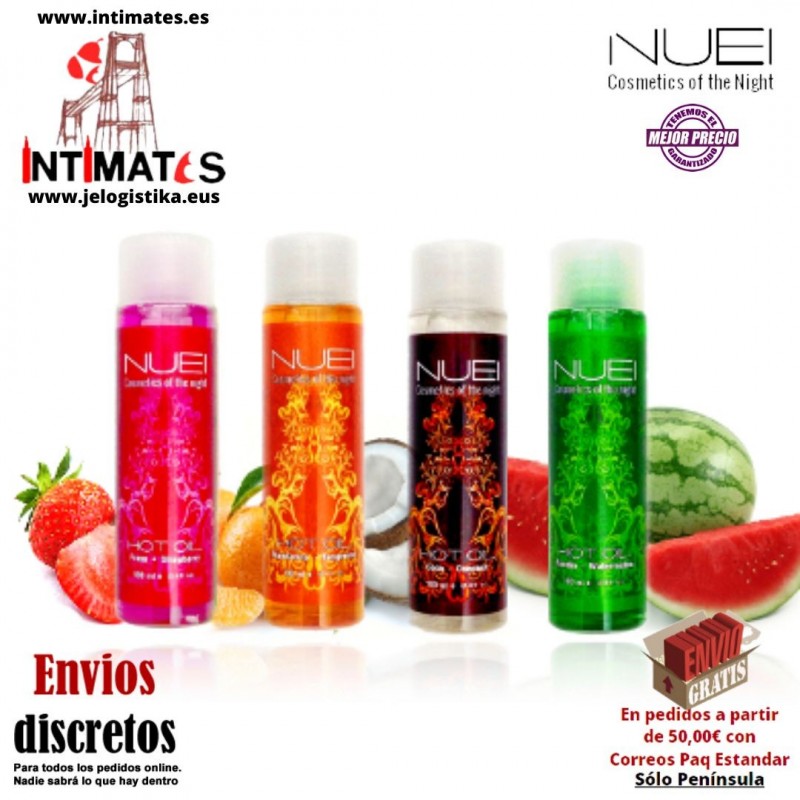 Dedícate tiempo para ti y tu pareja disfrutando de los aceites efecto calor de Nuei con sus deliciosos aromas a fresa ácida, sandía, coco o mandarina.