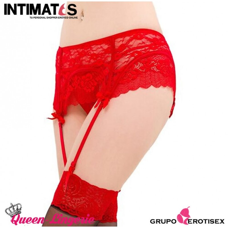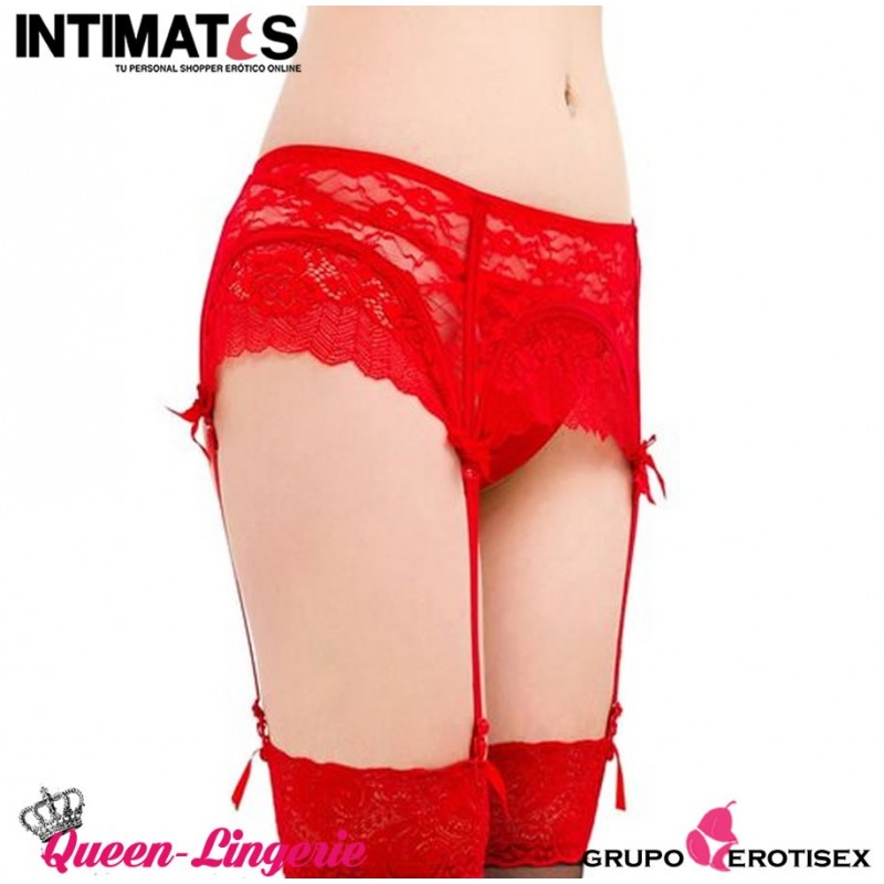 Tanga rojo con liguero de encaje · Queen Lingerie