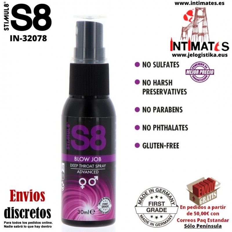 S8 Deep Throat Spray es un innovador spray a base de agua con un refrescante sabor a menta.