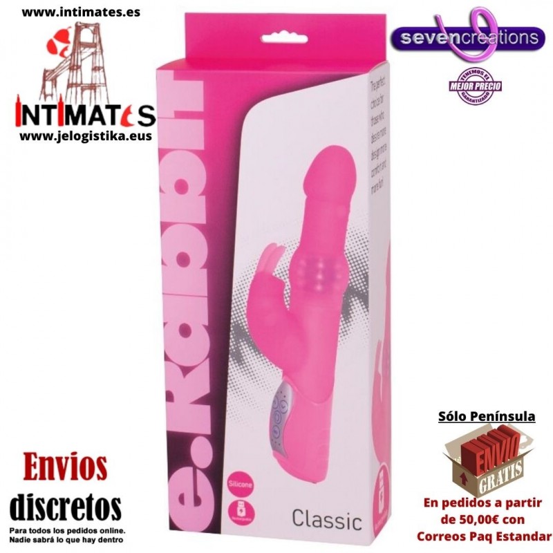E Rabbit Trhuster es un pacentero vibrador de silicona con bolas estimulantes en el eje y con un travieso rabbit en la versión Classic recargable de E rabbit