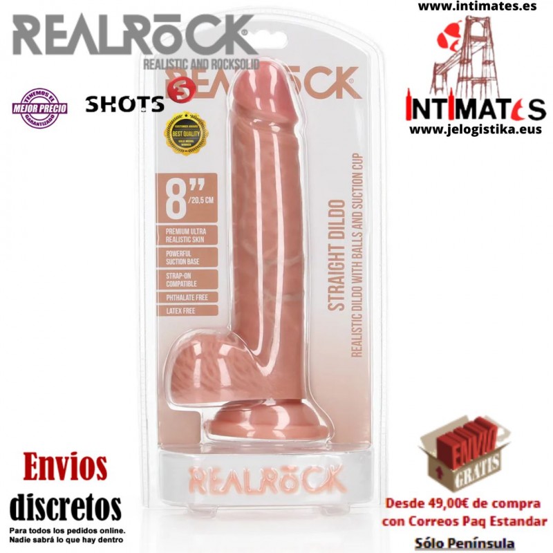Consolador realista recto con testículos y ventosa 8" · RealRock
