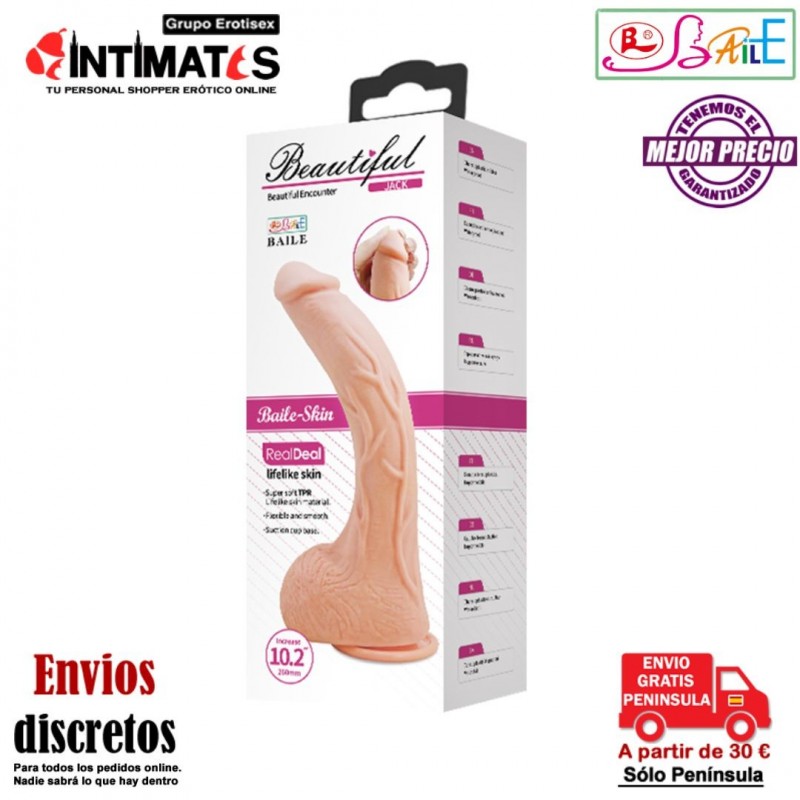 Jack es un consolador realista con escroto y ventosa.