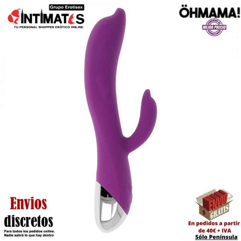 Con diseño de delfín tanto en su punta como en el estimulador para clítoris.