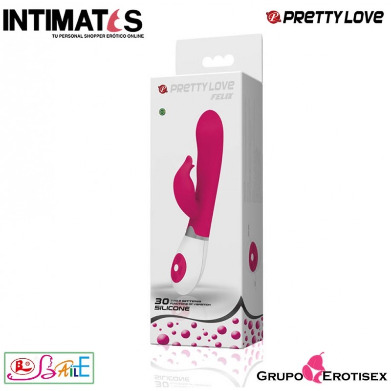 Felix hará que alcances orgasmos intensos con sus vibraciones pulsantes en tu interior, estimulando todos tus sentidos, ya que además incorpora un estimulador de clítoris ergonómico en forma de conejito rampante.