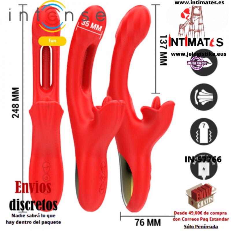 El vibrador Jessica de Intense es una obra maestra del placer multifuncional, diseñado para quienes buscan una estimulación profunda, externa e interna, con la más alta tecnología.