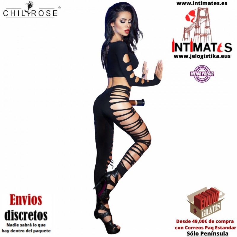 CR-3654 · Conjunto negro con aberturas · Chilirose