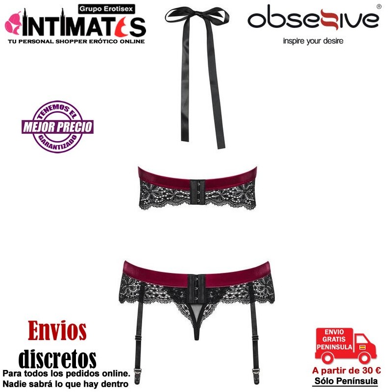 Encaje en los senos, material encantador y transparente y un atractivo liguero.