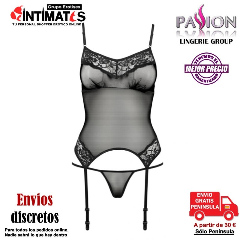 Este corsé está compuesto de fabulosa de lencería con un diseño espectacularmente sexy con el que te convertirás en una bomba de seducción, fabricado por la prestigiosa marca de lencería sexy Passion.