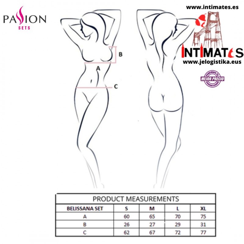 El conjunto Belissana combina sensualidad y elegancia moderna, diseñado para mujeres que aprecian la belleza sutil y el lujo en cada detalle.