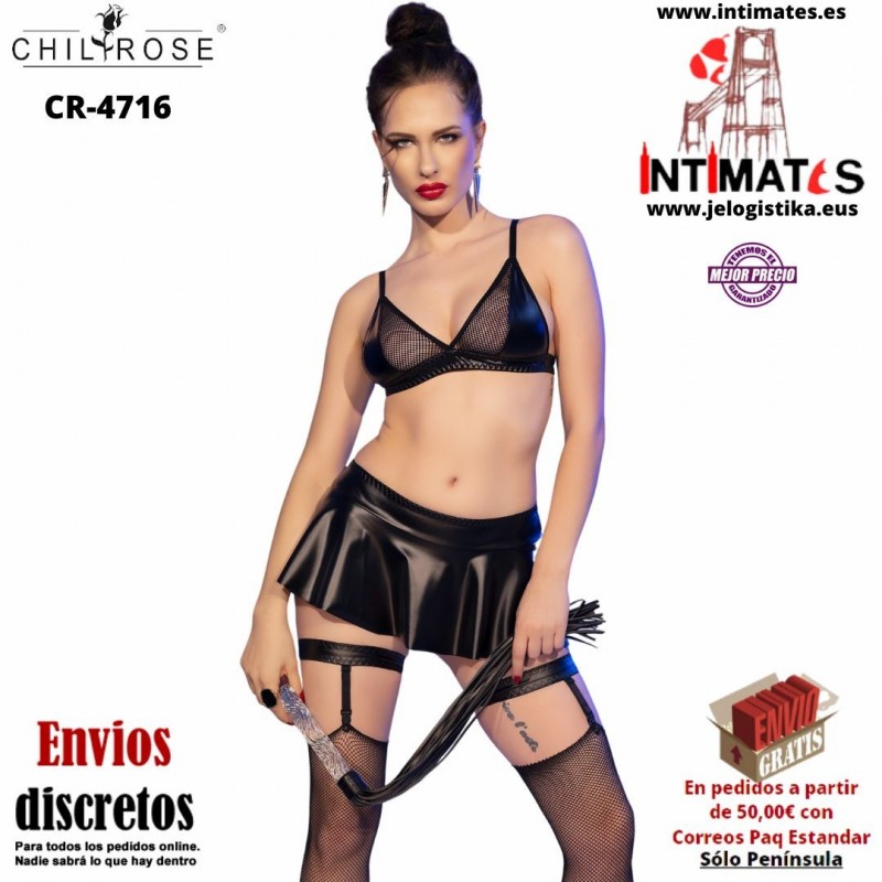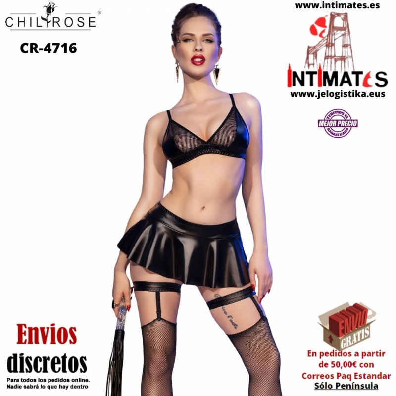 Este conjunto increíblemente sensual, confeccionado en polipiel, es una propuesta para quienes desean realzar su valentía y seguridad en sí mismas.