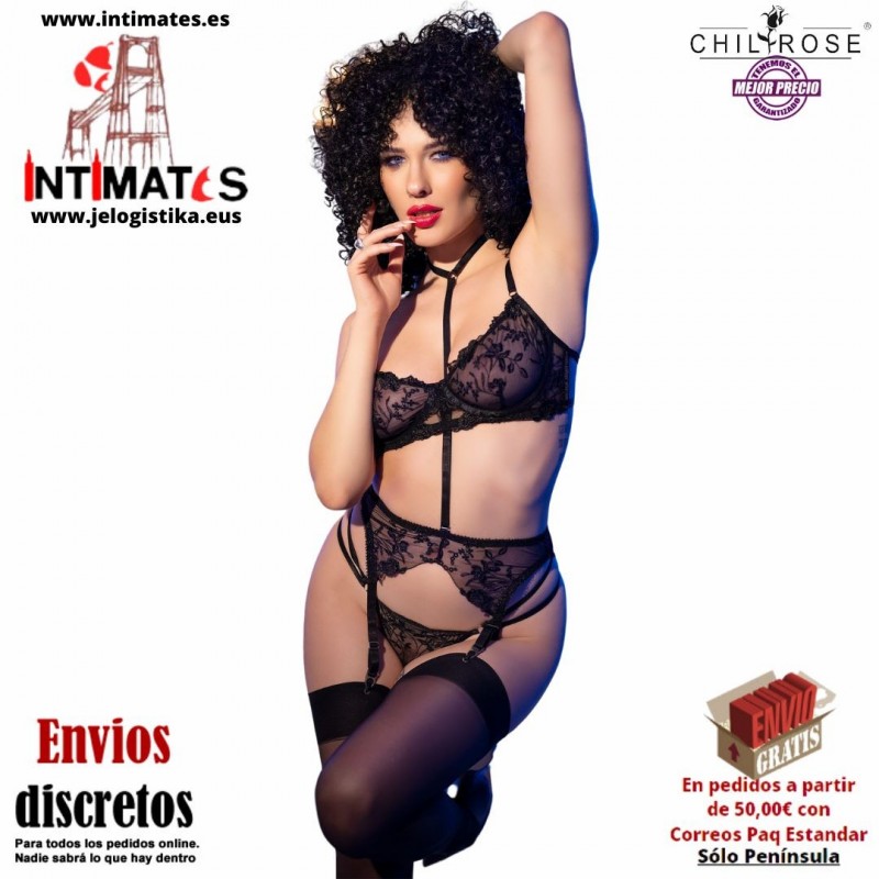 CR-4852 · Conjunto de encaje negro con bordado floral · Chilirose