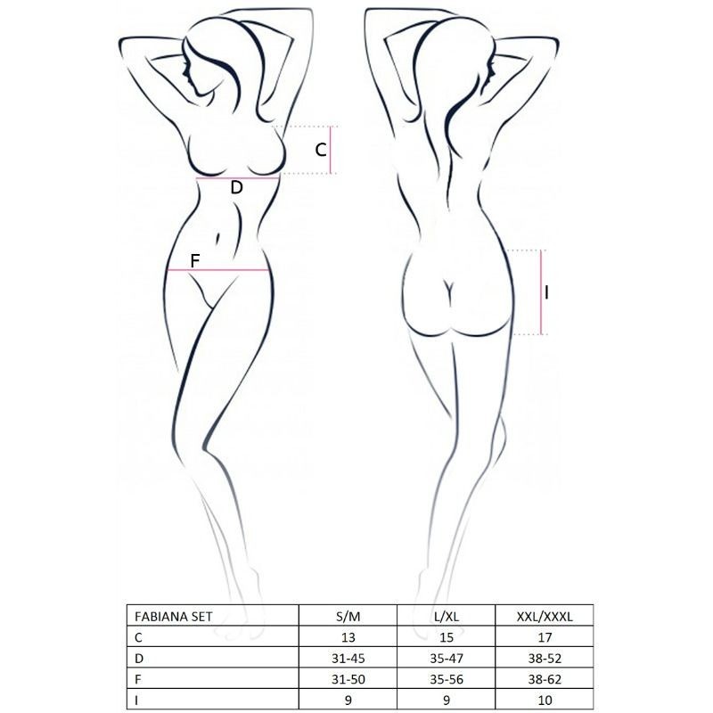 El set de la colección Fabiana es un fabuloso conjunto de lencería de diseño espectacularmente sexy con el que te convertirás en una bomba de seducción, fabricado por la prestigiosa marca de lencería Passion